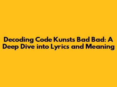 Decoding Code Kunst's Bad Bad: Lyrics And Meaning